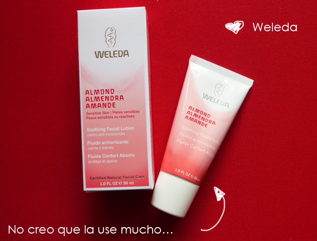 ❤ Weleda: Fluido armonizante. Gracias al aceite de almendra dulce calma la piel y reduce los signos de sensibilidad tales como irritaciones, picores, tirantez o rojeces. Tiene un olor que me recuerda a la cola blanca de pegar y es demasiado grasienta…