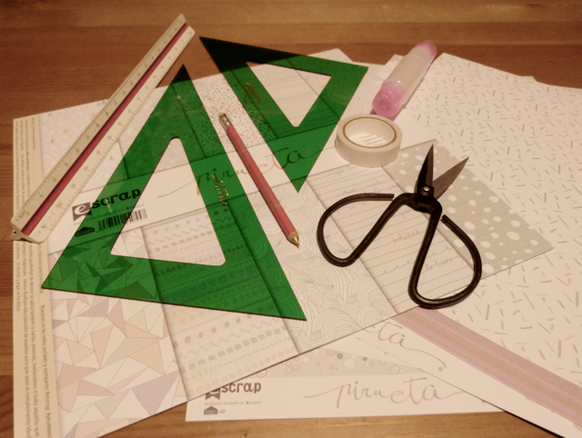 1.- Papel de scrapbooking estampado a doble cara, el que os muestro es de la colección Pirueta de studioescrap.